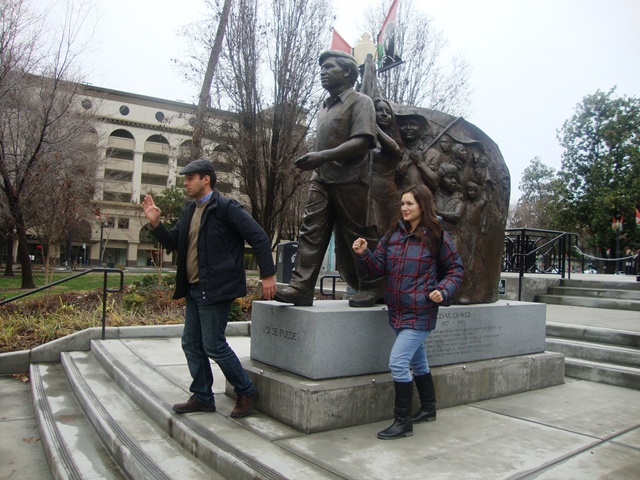 Then we headed to Sacramento, DA CAPITAL, to stay with my best friend from high school and her Chihuahua who was constantly tormented by Addie. We posed with Cesar Chavez (below), visited Old Town Sac, the Railroad Museum and got invited to dinner at a wonderful Indian family's house... that was delicious.