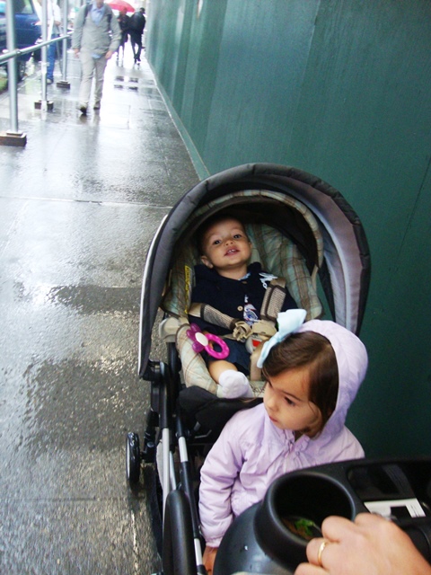 We flew into New York because it was cheaper and also my husband had never been to New York. I had packed all shorts/dresses and sandals and just one light sweater per person and of course it was raining when we got there. So all my travel plans (which involved walking and outdoors) went out the window. By the way, I really liked lovetaza.com's restaurant and travel recommendations for New York. Even though we didn't end up using them! So our day in New York was spent pushing them around in the stroller in the rain (luckily no one caught pneumonia!), and trying to use the subway and realizing what a nightmare it is with a stroller. We went to mass at St. Patrick's and spent the day at the American Museum of Natural History.