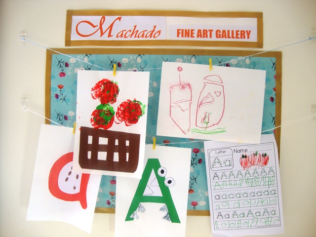 I finally got around to making a "fine art gallery" for our budding artists. I thought this pin was so cute at least a year or two ago, and it has always stayed in my mind since. Funny how that works. And I still have other pins in my head for a future date, or a future house.
