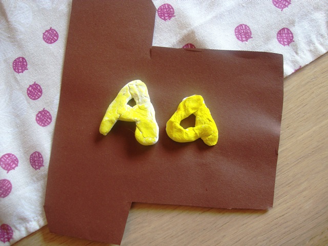 I've admired ShowerofRoses's Alphabet Path, but when I actually looked into doing it, I got a headache. It is so confusing, there are so many different crafts and baking activities she does... my goodness! So I got the simplest ideas possible: printable letters to make a book with, a handwriting page for practice, modeling clay to shape the letters with, a new mini chalkboard for practicing letters on. And we don't do one a day or one a week, but one whenever she feels like it. I say in the morning, "Let's pick something out to do for preschool." Somedays she might not want anything, but if she wants to pick a letter ("let's do the ABCs!"), I help her cut and glue the printable letter (eventually we'll put them all together for a book), then she does the handwriting page and I help her model the letter out of clay, which goes in the oven 5-10 min. The next day, if she wants to do a letter again, we might do a simple craft from Pinterest with that letter (see apple stamping above), paint the modeling clay that has dried, and draw on the chalkboard. That's it! And it has been so much fun for the both of us, it really has. The main struggle has been keeping her brother away, who wants to be doing the EXACT thing she is doing. Oh my goodness, what a wrecking machine.